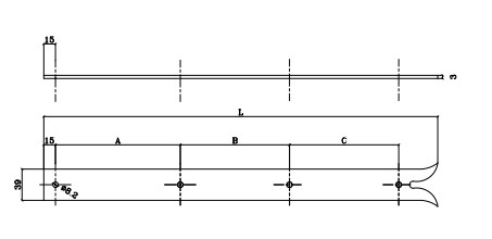 | Code | Longueur L | A | B | C | Nb Trous | Lg Vtl Mini | Lg Vtl Maxi |